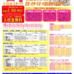| 17:00~21:20 (小学生は15:30~18:20 または16:30~19:20) | 残り4名 | 休校 | 残り4名 | 残り5名 | 残り5名 | 14:00~18:20 (小学生は14:00~16:50 または15:30~18:20) | 残り4名 |
