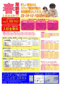 中古パソコン販売始めました 2026年3月16日 最終更新日時 : 2026年3月16日 stepkobetsu 今までパソコン修理やパソコン教室を行っていましたが、2026年3月からご要望にお応えして中古パソコンの販売も始めました! この度チラシが完成しましたのでぜひご覧下さい。詳しくは中古パソコン販売のぺージをご覧下さい。