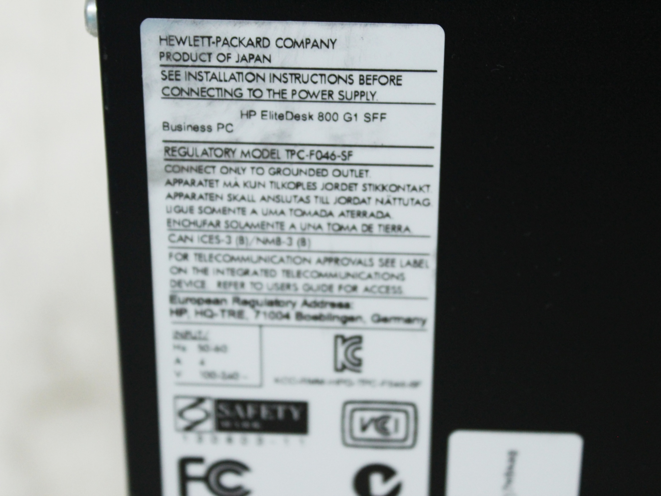 | メーカー | HP | 品名 | EliteDesk 800 G1 SFF |