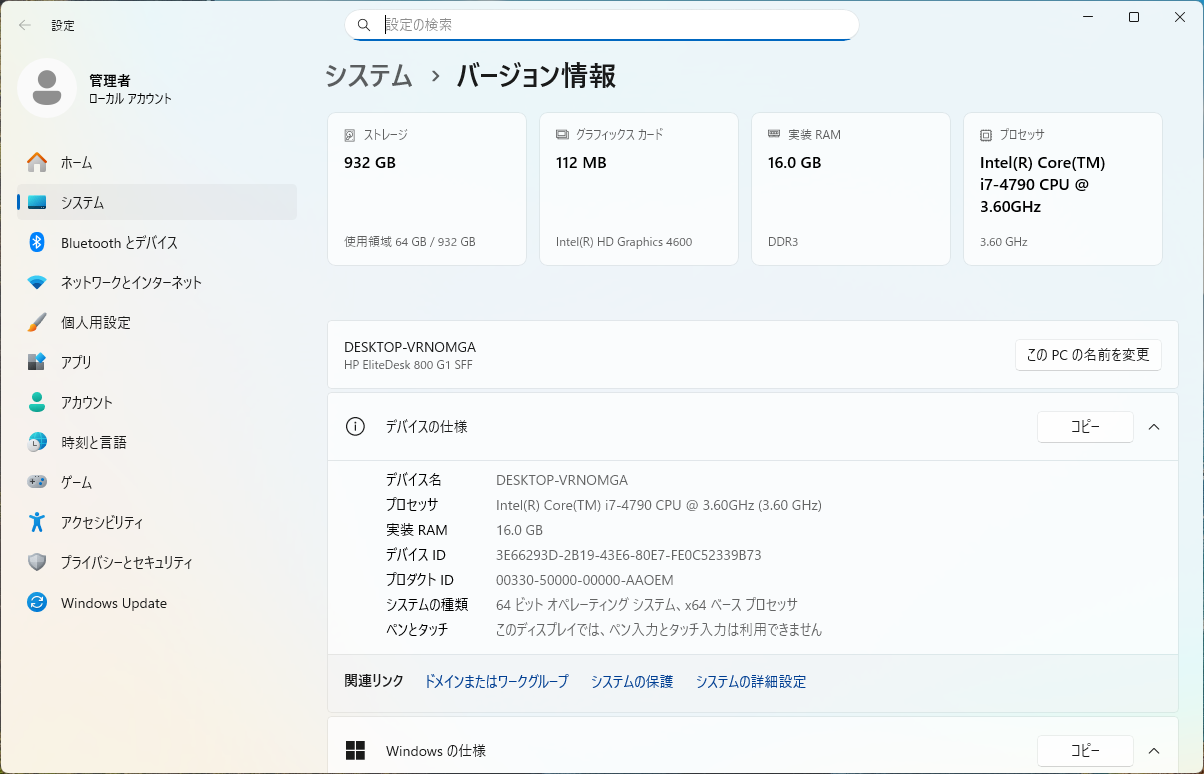 | OS | Windows11 Professional | CPU | Core i7-4790 3.6GHz |